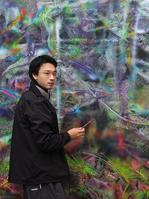 Bai Yiyi (born in 1992, lives and works in Shanghai) is a Chinese artist graduated in multimedia at the Raffles School of Design, Donghua University, China. His work has been shown in Beijing at the 798 Art Center, the Cheng Contemporary Art Center. “Stay in Character” at PACT was his first-ever solo show.Bai Yiyi’s work mainly focuses on the concept of “hybridization”. “hybridization” refers to accidental factors, or the mixing of species under human intervention, or the cross-cultural colonization in the development of human modern society. In his work, he extends “hybridization” to the possibility of symbiosis between natural and artificial beings. Bai lived on a farm through childhood, thus developed a keen interest in the environment and animals. Later, his multimedia work experience has led to the habit of observing data and image streams. Since 2016, he has begun to collect a large number of images from different sources, including natural landscapes in the environment and image streams captured on the Internet. He uses software to extract parts that interest him, collects and displays them. In this process, a unique observation method has gradually formed. In the past two years, he has deliberately shaped the outline of his collected material to the living body, by stretching, twisting, repeating the skin texture, and occupying a large area of the canvas, he changed the form of life and filled the “blank space” of painting. In Bai’s opinion, the biggest difference from the “hybrid” in biotechnology is that the “hybrid” in art creation is completely fictitious. Creatures that have been recreated on the canvas have unlimited possessions and exist in a completely hypothetical space.