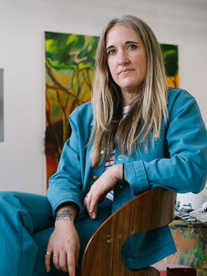Shara Hughes (b. 1981, Atlanta) uses dizzying brushwork, vibrant colors, and shifting perspectives to make paintings that defy many of the existing conventions associated with the landscape genre. Natural motifs and patterned elements recur throughout Hughes’s pictures: snake-like trees, floating moons, distorted reflections in bodies of water, and stippled night skies appear in various permutations, synchronized with harder-to-define forms in which abstract and representational impulses co-exist in unorthodox harmony. Hughes’s process rarely involves reference images; instead, she transposes the psychological complexity of her interior world into lush and layered compositions. She often mixes pigment directly atop her surfaces, and in this way creates intuitive, one-of-a-kind color palettes that simultaneously point to art historical movements like color field painting and Post-Impressionism. As she engages with these open-ended experiments in image-making, Hughes depicts kaleidoscopic visions of flora and fauna in processes of constant evolution.
