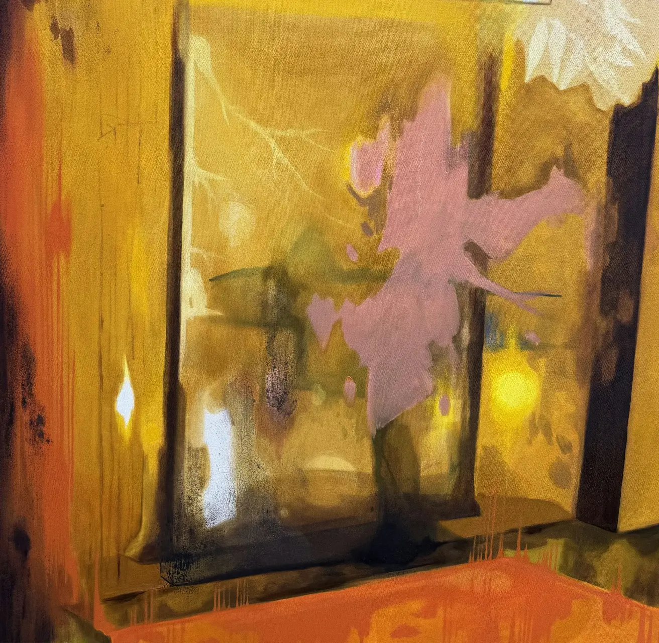 Hettie Inniss' work responds to multisensory influences and bodily experiences, capturing and preserving a moment inflected by scent, light, sound and memory. Inniss is an artist whose practice questions the stability of self. Her distinctive canvases seek to create spaces with their own physics, their own truths and their own multidimensional perspectives. Inniss’ vibrant colour palette allows her to articulate memory and the act of remembering – capturing the afterburn of an image or the light seen behind closed eyes with a warmth and physicality that brings a bodily presence into her canvases.Working from her involuntary memories, Inniss takes a Proustian approach to making, focusing on the unexpected moments where our senses are stimulated and the mind transports us to familiar or uncanny spaces. Inniss’ unique response to multisensory stimuli in her work allows her to explore how a memory might taste or sound, and how she can capture these ineffable sensations in paint and texture. Her practice tests and resists the boundaries of representational painting, connecting to Inniss’ belief in Black Fluidity as a liberating approach to life and art.