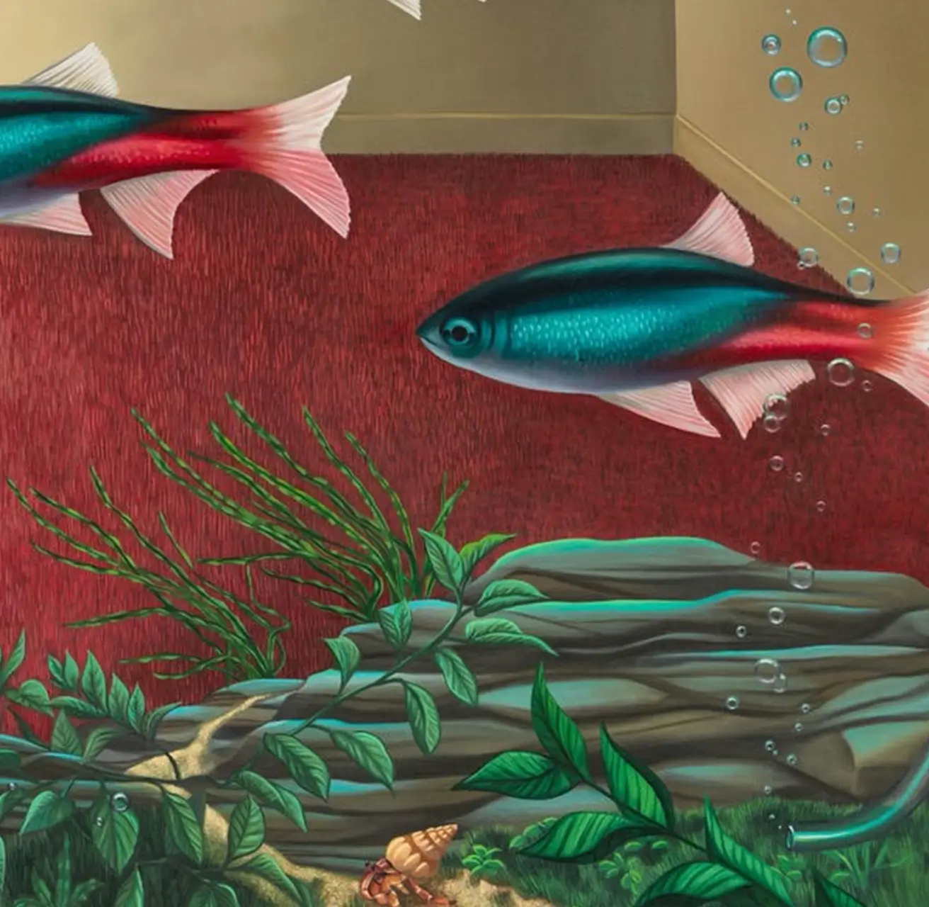 Born and raised in Paris, Curtiss studied at l’Ėcole des Beaux-Arts before moving first to Japan and then to New York, where she now lives and works. Employing a highly stylised visual language, she draws on a history of figurative painting including 18th- and 19th-century French painting, as well as the Chicago Imagists and the ‘pop’ imagery of comic books, manga and illustration. Her subject matter centres on the female body, through deconstructed and fragmented details like heads or legs, or the symbols of stereotyped ‘femininity’ such as long nails, flowing hair or high heels. In a similar manner to Post-Impressionist painters, Curtiss mines her subjects from contemporary, everyday life, representing its curious, small details in cropped and ambiguous compositions that are erotically charged, and cinematic and dreamlike in feel, interweaving the general and specific in ways that are at once fantastical, precise and unsettling. Through the use of unexpected juxtapositions, of subject with object, of the seen and the implied, and an exaggerated portrayal of cartoon-like forms, her paintings are infused with a direct and deadpan humour, revealing the uncanny within the banal and the grotesque and surreal undertones of human characteristics and behaviour.