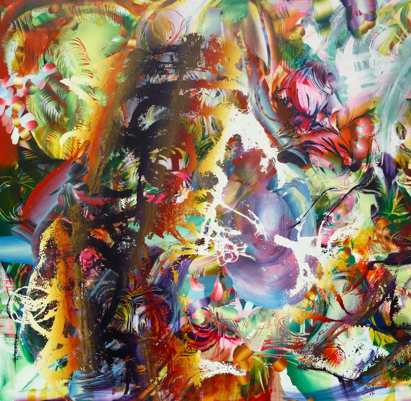 Lauren Quin approaches the act of painting as a process of ongoing inquiry. Her paintings are at once radically intuitive and deeply considered, simultaneously sedimentary and archaeological. Composed from dynamic, intensely chromatic forms, they challenge our understanding of abstraction while exploring the mutability of language and symbol.Quin’s practice is rooted in an evolving archive of imagery, which takes shape throughout her drawings, prints, and carvings, providing seeds for her painterly abstractions. These images operate in multiple registers and are sometimes printed onto the surface of the canvas or carved back into it through layers of wet paint. Quin also transfers select images onto the verso of her canvases, where they act as internal coordinates as she works. In this way, her archive provides a system of visual anchoring, linking individual paintings and allowing earlier studies to inform subsequent inquiries.Quin’s works accumulate as much through subtraction as through addition. She builds her compositions in successive layers, interrupting them with excavations of intricate linear networks of carved paint, which bloom across the picture plane. Using and reusing a core repertoire of idiosyncratic gestures and techniques—including “carving” as well as monoprinting drawings directly onto the surface of the painting—Quin orchestrates scintillating atmospheres alive with movement and depth.Across Quin’s paintings, remnants of previous forms drift, emerge, and recede, creating oscillating and complex visual fields. The paintings resist finality, hovering in a state of visual flux, where images constantly coalesce and dissolve. Quin suspends these images between abstraction and objectivity—allowing her forms to hold multiple references at once. The abstract “tube”-like marks that proliferate in many of her paintings sometimes appear like tunnels or pathways, and at other times like furrows or mouths. Throughout Quin’s works, references to the body—and its thresholds between interior and exterior space—act as a touchstone.