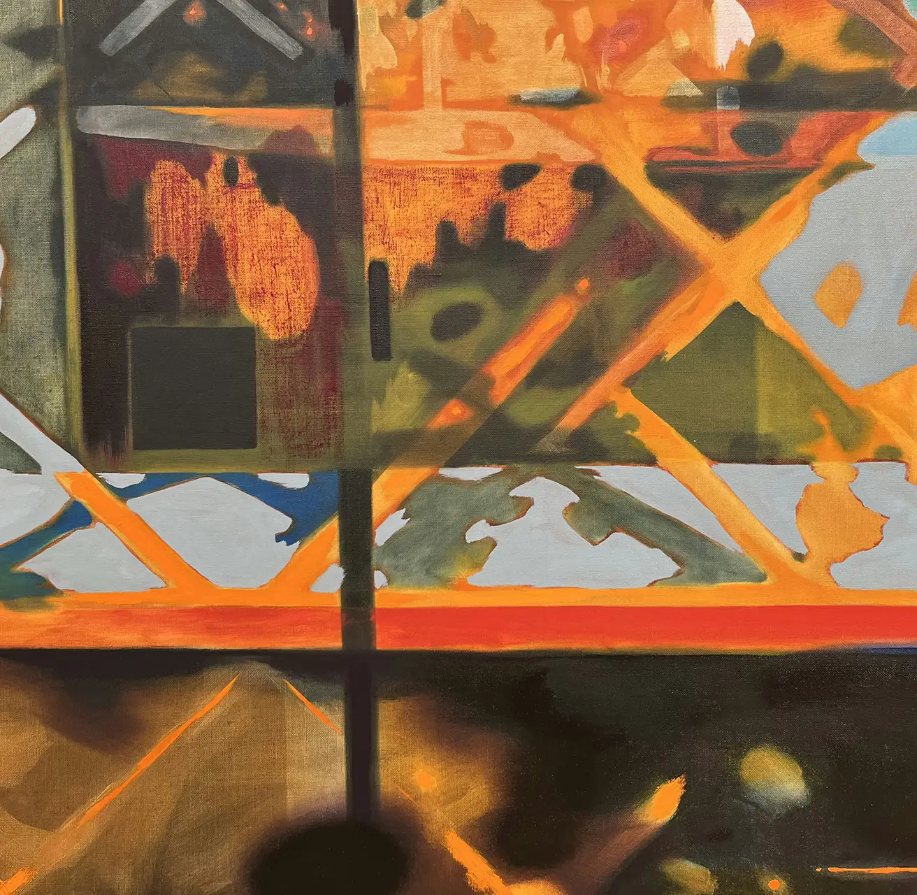 Hettie Inniss' work responds to multisensory influences and bodily experiences, capturing and preserving a moment inflected by scent, light, sound and memory. Inniss is an artist whose practice questions the stability of self. Her distinctive canvases seek to create spaces with their own physics, their own truths and their own multidimensional perspectives. Inniss’ vibrant colour palette allows her to articulate memory and the act of remembering – capturing the afterburn of an image or the light seen behind closed eyes with a warmth and physicality that brings a bodily presence into her canvases.Working from her involuntary memories, Inniss takes a Proustian approach to making, focusing on the unexpected moments where our senses are stimulated and the mind transports us to familiar or uncanny spaces. Inniss’ unique response to multisensory stimuli in her work allows her to explore how a memory might taste or sound, and how she can capture these ineffable sensations in paint and texture. Her practice tests and resists the boundaries of representational painting, connecting to Inniss’ belief in Black Fluidity as a liberating approach to life and art.