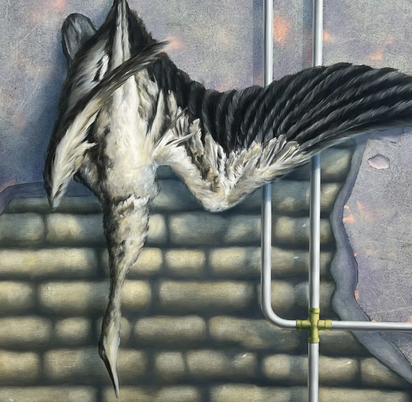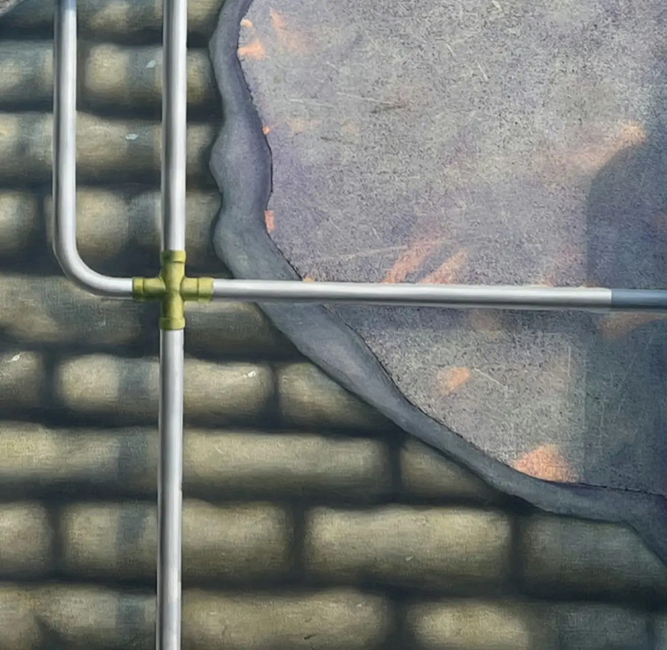 Tommy Harrison’s work is preoccupied with the process of constructing and collapsing the painted image. Demonstrating a highly sophisticated range of techniques and influences, the artist’s work draws on various painterly traditions from the High Renaissance to the present day. Each work is ultimately concerned with the technical journey that is taken to arrive at a composition, built up through an unfolding process over several months, beginning with geometric forms that lead to a range of possible outcomes before being resolved into dark, mysterious landscapes and uncanny interiors. Harrison begins by drawing directly onto the canvas using tailor’s chalk, establishing an initial framework for each composition that becomes quickly discarded. Operating without preconceived logic, the process by which images emerge is circuitous, with the artist responding in stages to his own previous marks and gestures until a direction begins to reveal itself. This provides a blueprint, from which nascent formal and figurative imagery emerges, creating a point of tension from which Harrison can continue to build or dismantle with the application of oil paint. Allowing for a kind of ordered spontaneity to guide his process, as opposed to contrived planning, Harrison slowly negotiates a plurality of possible compositional outcomes, working on multiple canvases simultaneously over weeks and months. His paintings are often anchored by a motif or found subject derived from art history and wider visual culture. Cropped bodies, animals, theatrical curtains, ornate patterns, anonymous landscapes or claustrophobic interiors, are appropriated and deployed as pure form, stripped of narrative or didactic function.